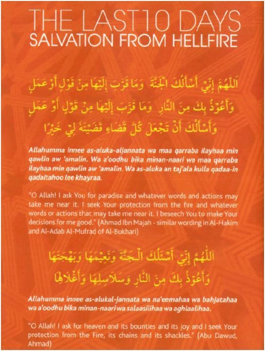 Supplication For The Last 10 Nights Of Ramadhan -Nights Of Protection From The Fires Of Jahannam