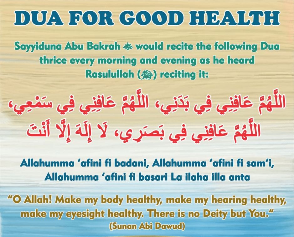 Supplication For Good Health Published on Jun 5, 2020Jun 2, 2020 by Rozana Zeti Dear Allah please grant us full protect from the corona virus and grant us good health so we can do more ibadah for you. Ameeen Ya Allah Ameeeen. Share this: Click to email a link to a friend (Opens in new window) Email Click to print (Opens in new window) Print Click to share on Facebook (Opens in new window) Facebook Click to share on LinkedIn (Opens in new window) LinkedIn Click to share on Reddit (Opens in new window) Reddit Click to share on X (Opens in new window) X Click to share on Tumblr (Opens in new window) Tumblr Click to share on Pinterest (Opens in new window) Pinterest Click to share on Pocket (Opens in new window) Pocket Click to share on Telegram (Opens in new window) Telegram Click to share on WhatsApp (Opens in new window) WhatsApp Like Loading... Related
